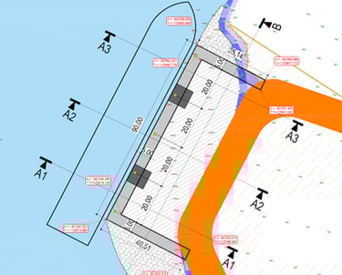 Dimensionnement des ouvrages génie civil (quai, bâtiments, hangars métalliques et VRD)